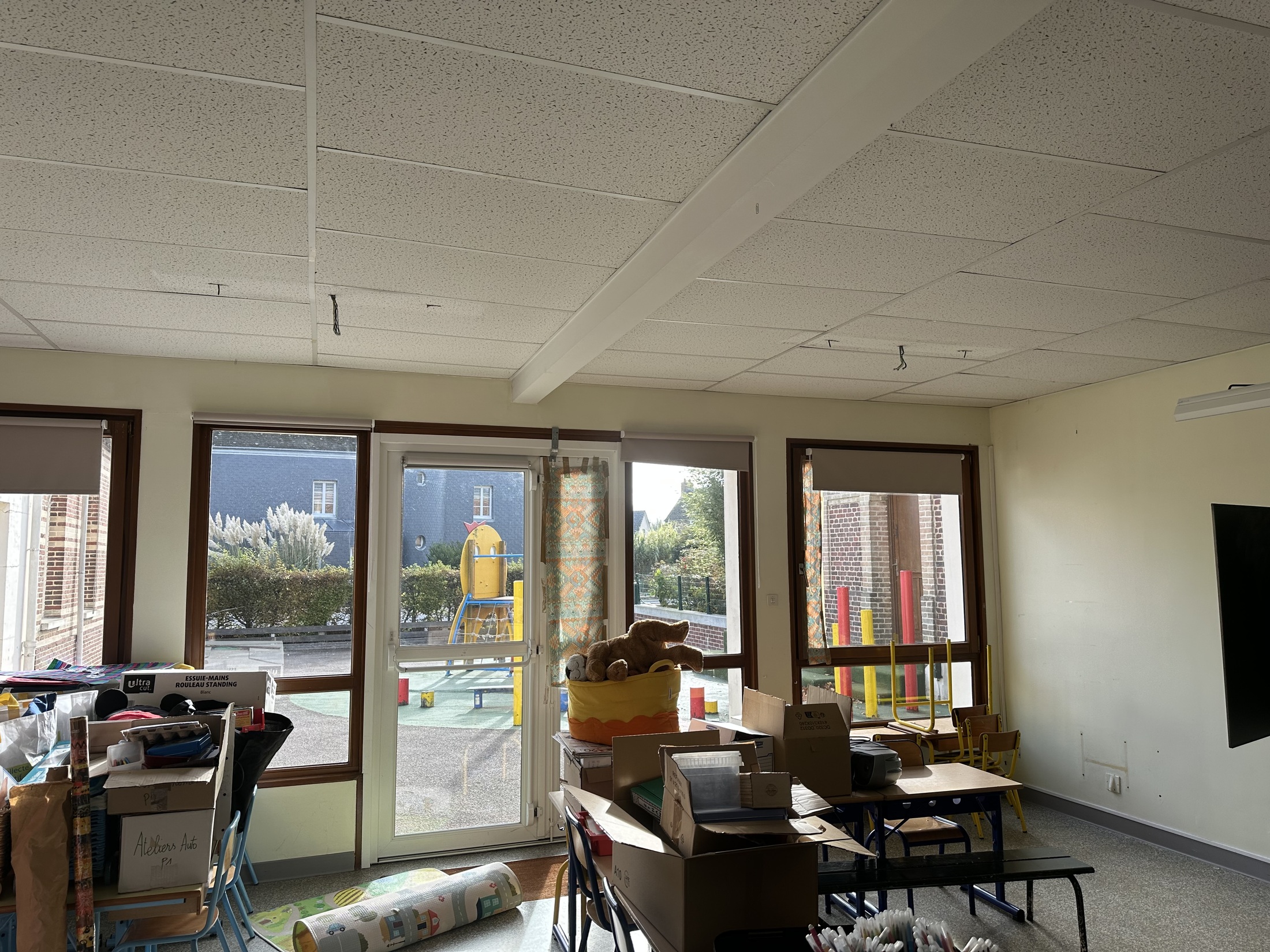 A partir du 03/11/2025, ce sont les compagnons des entreprises qui vont œuvrer dans la maternelle: électricité, chauffage, isolation thermique par l'extérieur, réfection de l'isolation et de l'étanchéité des toitures-terrasses, isolation et remplacement des couvertures ardoises, remplacement des menuiseries extérieures...