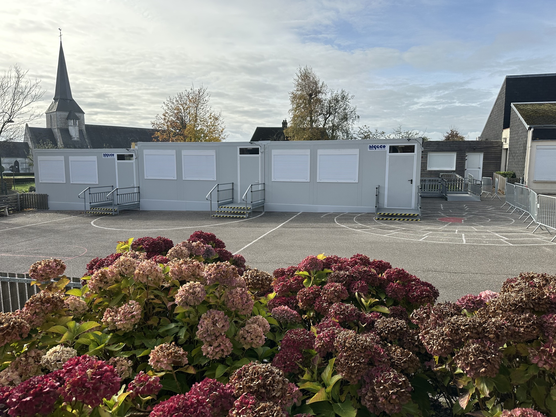 Dans la cour de l'élémentaire, 3 classes provisoires ont été montées.